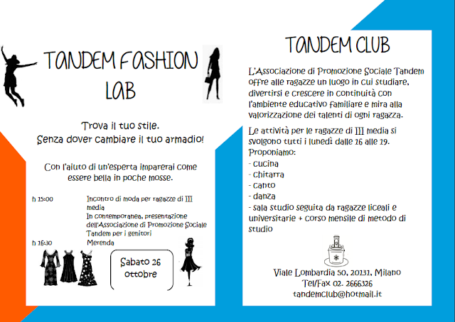 SABATO 26 OTTOBRE non perdere il TANDEM FASHION LAB!!!